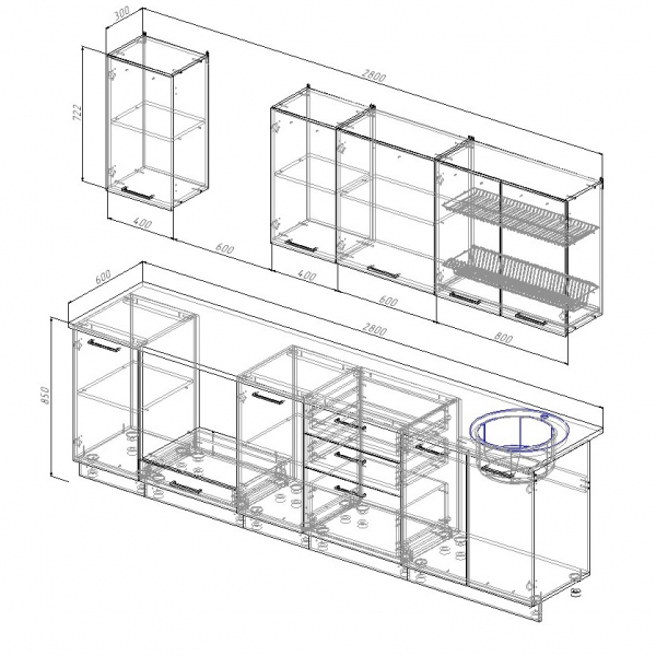 Кухонный гарнитур Фьюжн 2800 (Санвут)