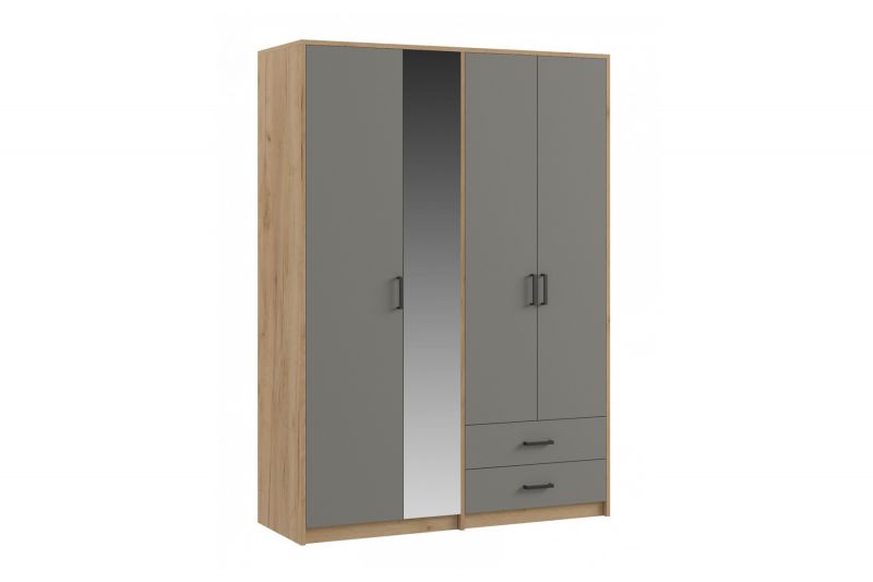 Шкаф 1500 мм 4-х ств. с зеркалом 2 ящ. SVETLANA LOFT, Дуб золотой/Серый (Генезис)
